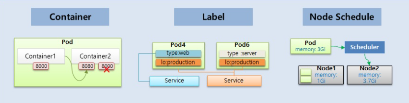 - 한 파드내에서 컨테이너의 포트는 같을 수가 없음