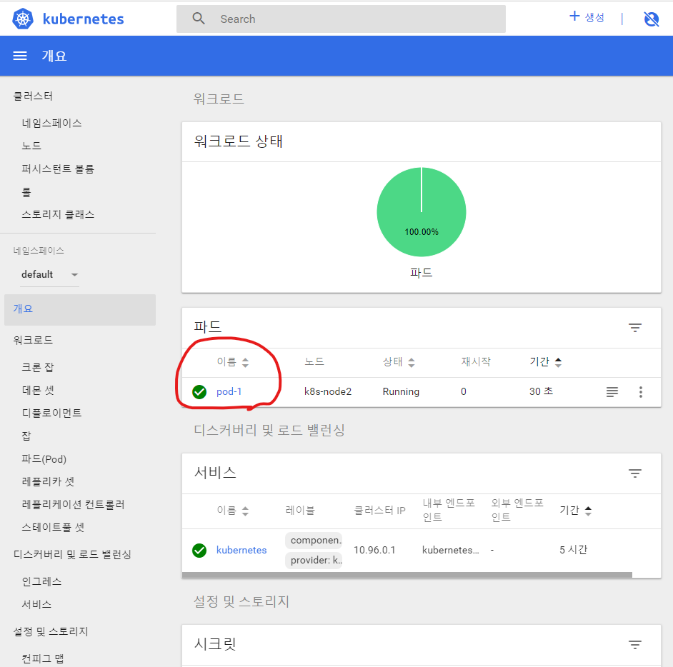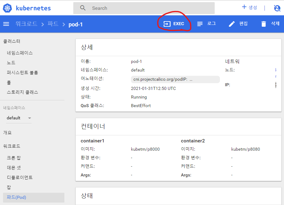 생성중인 pod-1 클릭