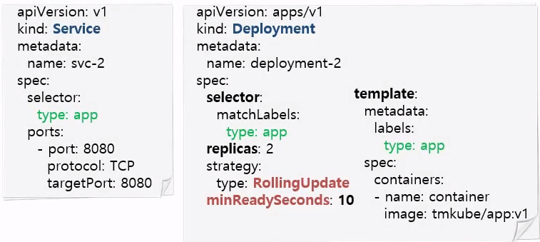 - 컨트롤러에 ty:app라벨과 ver:v1라벨이 붙은 파드를 만들고 ty:app 라벨을 가진 서비스에 연결시킴
