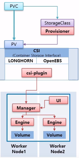 Container Storage Interface로 자신의 Volum Solution에 대한 플러그인을 쿠버네티스에 반영을 안 하거나 업데이트용으로 새로 적용하려고 할 때 사용