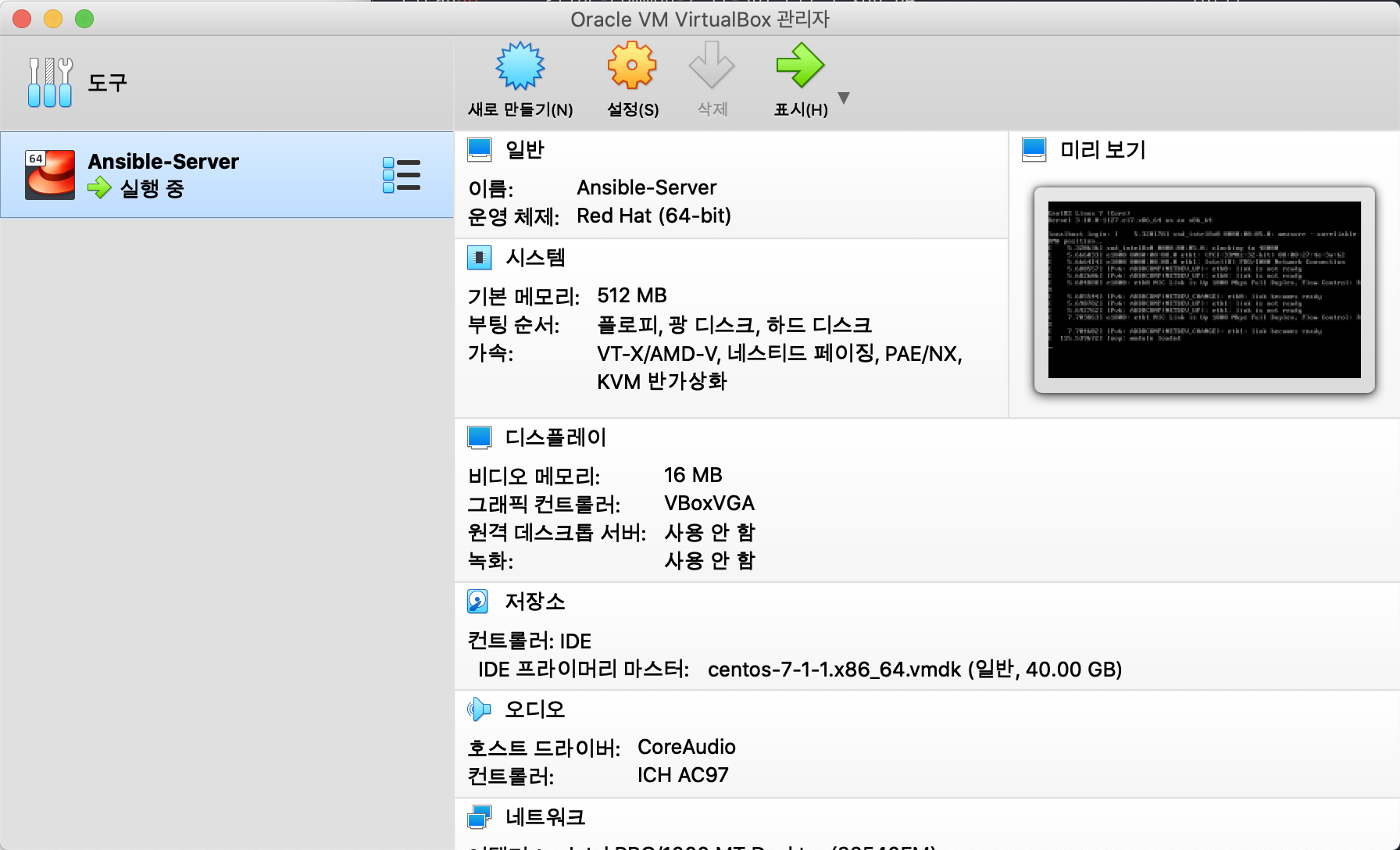 vb.name="Ansible-Server" # virtual box의 이름 변경